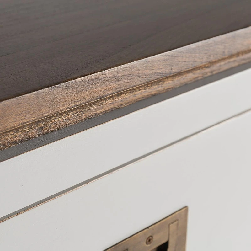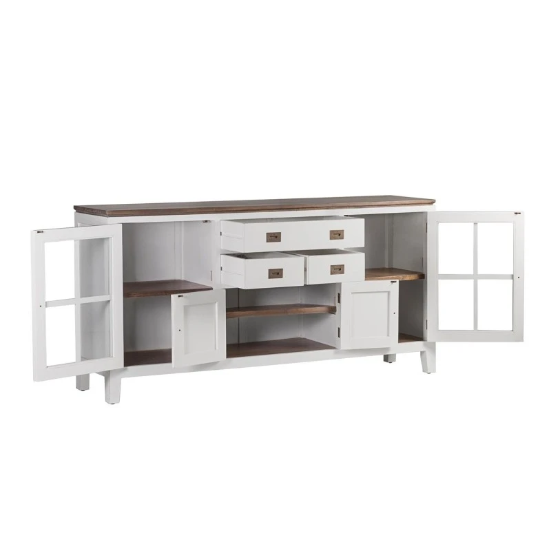 Aparador colonial blanco Everest con 3 cajones y 4 puertas. Fabricado en madera de mindi.