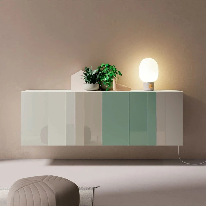 Aparador moderno suspendio con frentes en cristal lacado.