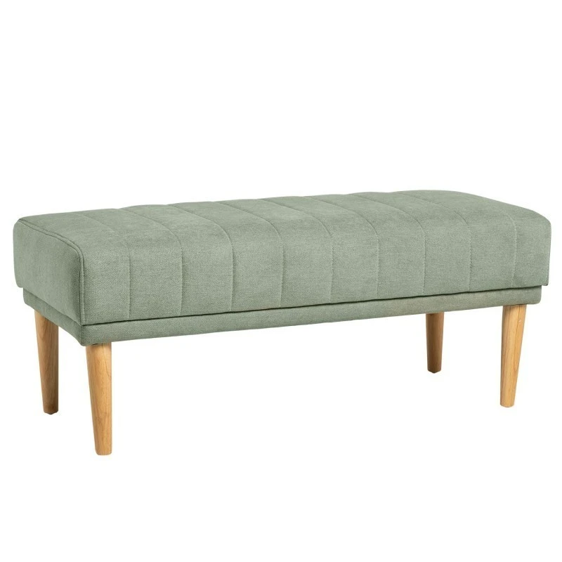 Banqueta BARI tapizada en tela color menta y patas de madera.