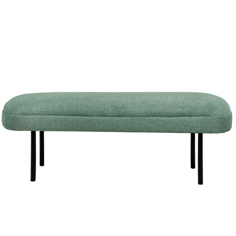 Banqueta ADDA tapizada en tela color menta y patas metálicas negras.