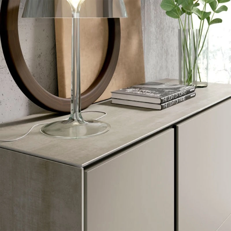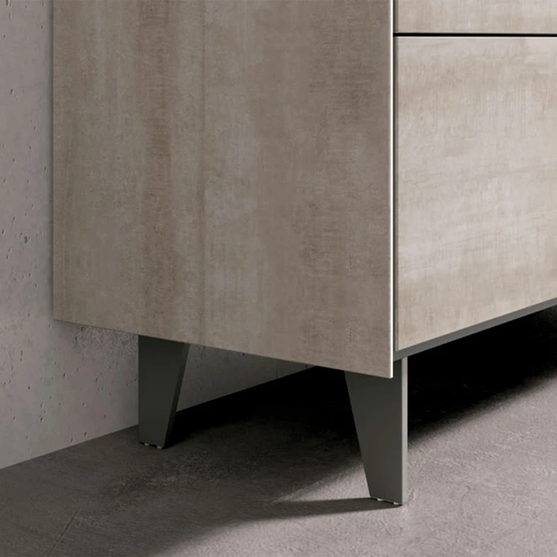 Acabado foto: Ceramica blaze grey, lacado Piedra mate y lacado Corda mate. Tirador «L» y «U».