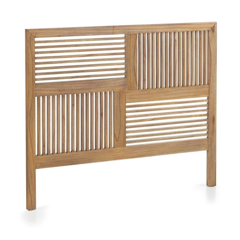 Cabecero de estilo colonial con barrotes horizontales y verticales. Fabricado en madera de mindi con acabado natural.