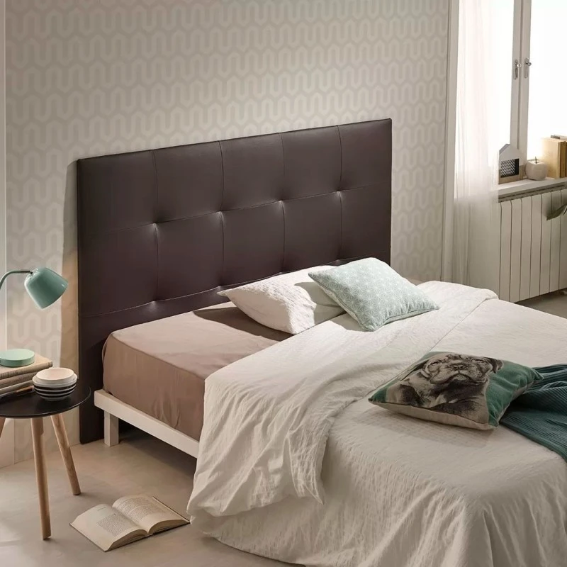 Cabecero tapizado Oslo. Tapizado en polipiel Eco-Nature, disponible en 9 colores. Cabecero formado por piezas cuadradas y que lleva a modo de adorno un ligero capitoné sin botones, ideal para cualquier estancia.