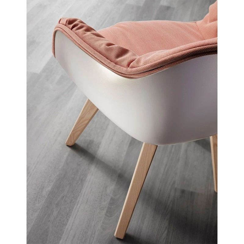 Silla de comedor Lap con pie en madera de haya o fresno macizo, carcasa lacada y asiento tapizado desenfundable. Se puede lacar en 30 colores lisos y 6 especiales (brillo, cemento, acero, cobre, nácar y negro-oro)