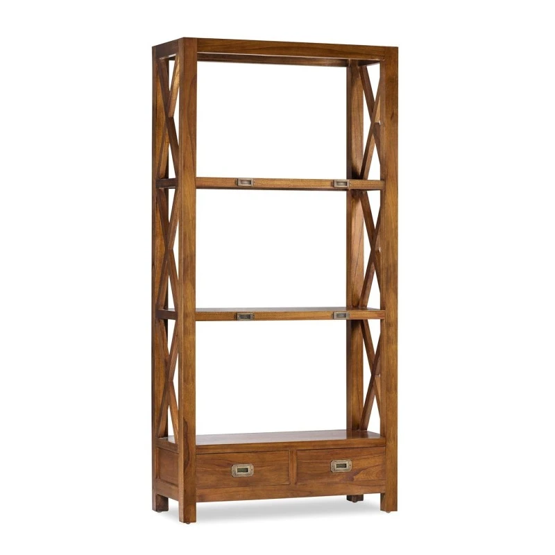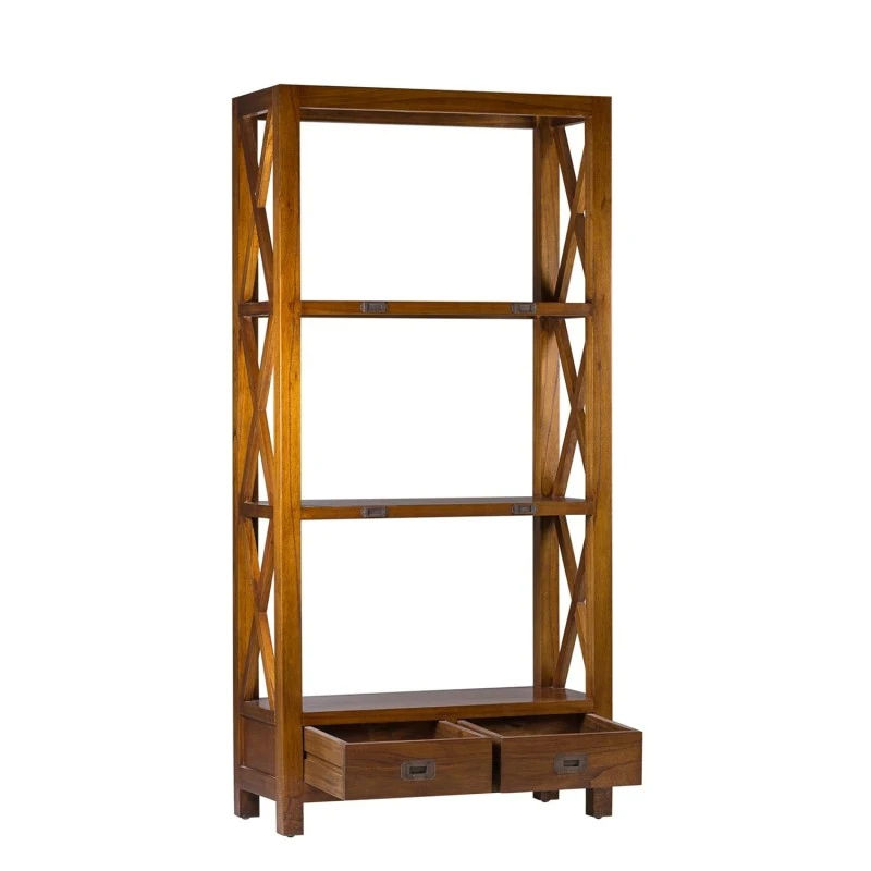Librería baja de estilo colonial Star con 2 cajones y 4 huecos. Fabricada en madera de mindi.