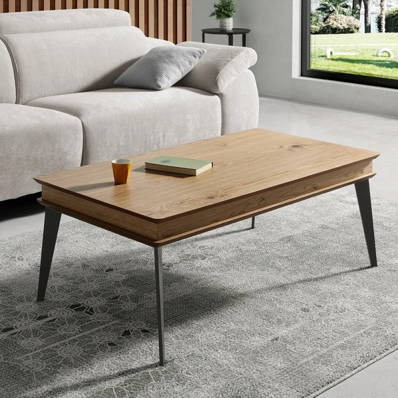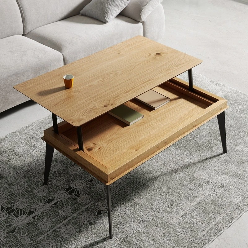 Sistema de elevación en acero cromado, con accionamiento asistido. Compartimiento revistero.