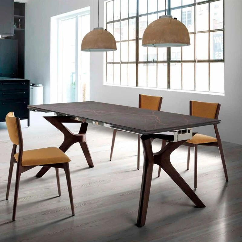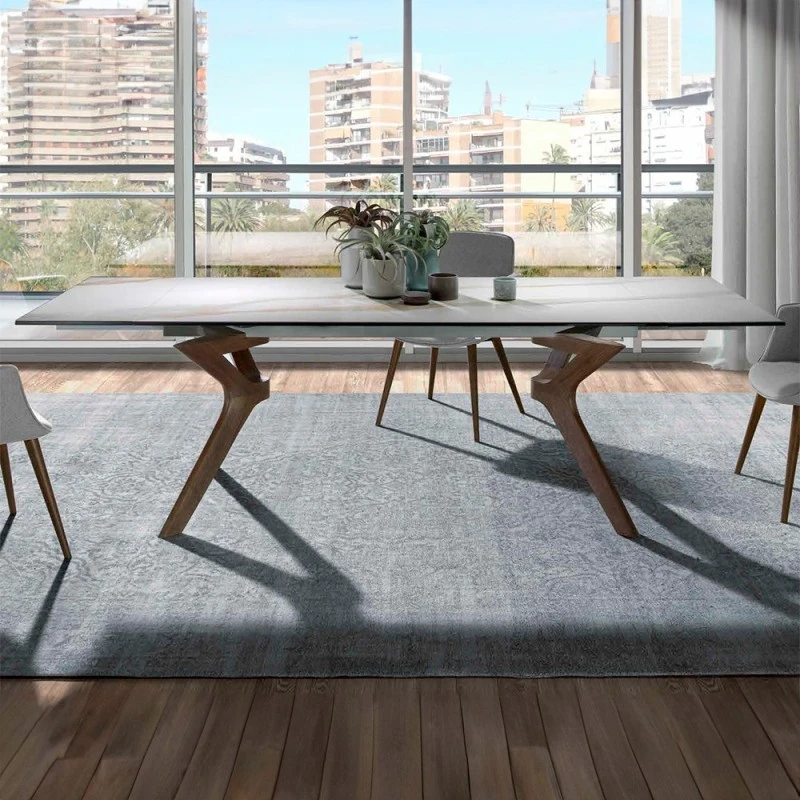 La combinación de porcelanico y madera de la mesa extenisble NIl ofrece una estética sofisticada que puede elevar el estilo de cualquier comedor. El porcelanico aporta modernidad y resistencia, mientras que las patas de madera añaden calidez y naturalidad. La capacidad de ampliar la medida de la mesa permite ajustarla a diferentes necesidades, desde comidas diarias hasta reuniones familiares o con amigos, optimizando el uso del espacio. El diseño moderno de la mesa Lin facilita su integración en diversos estilos decorativos, haciéndola una pieza adaptable y duradera en términos de tendencias de diseño.