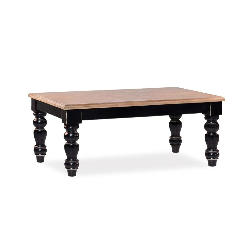 Mesa de centro vintage Sena. Fabricada en madera de mindi con acabado natural en la tapa y fpatas pintadas en negro.