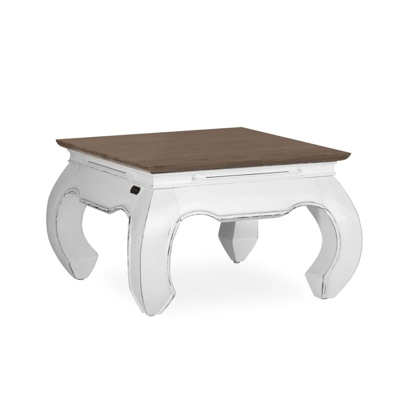 Mesa de centro cuadrada blnaca opium Everest. Fabricada en madera de mindi.
