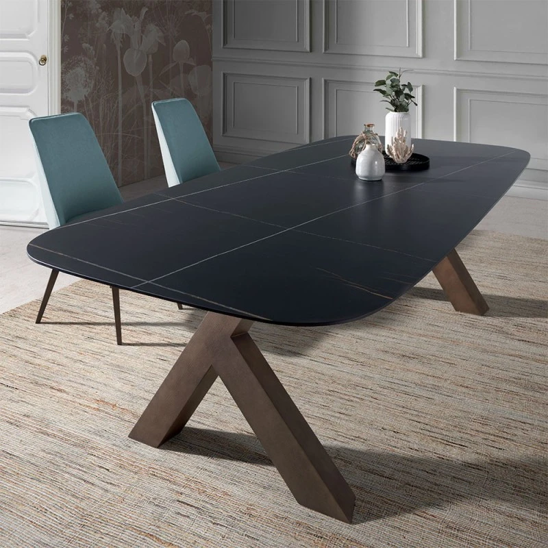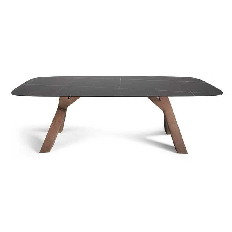 Mesa de comedor Ash Fix con patas de haya con elección de acabado y tapa en porcelánico.