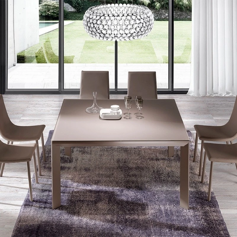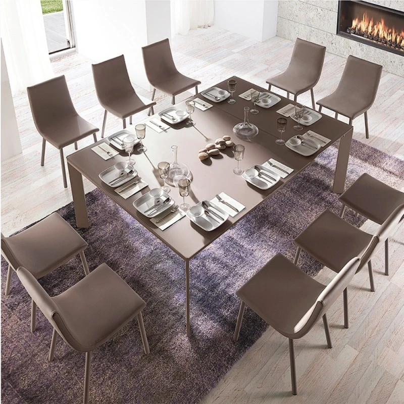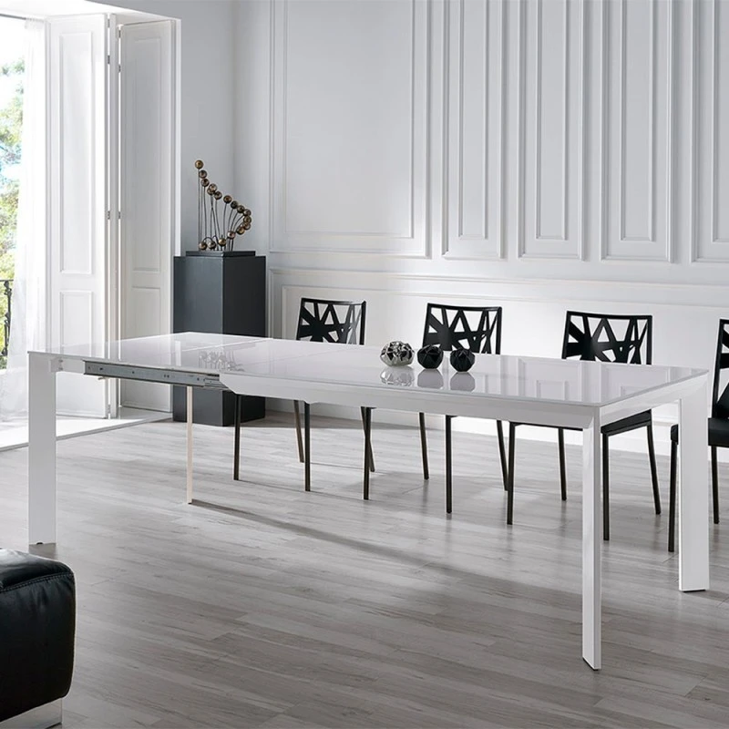 - Mesa de comedor fija o extensible por desplazamiento de las patas.