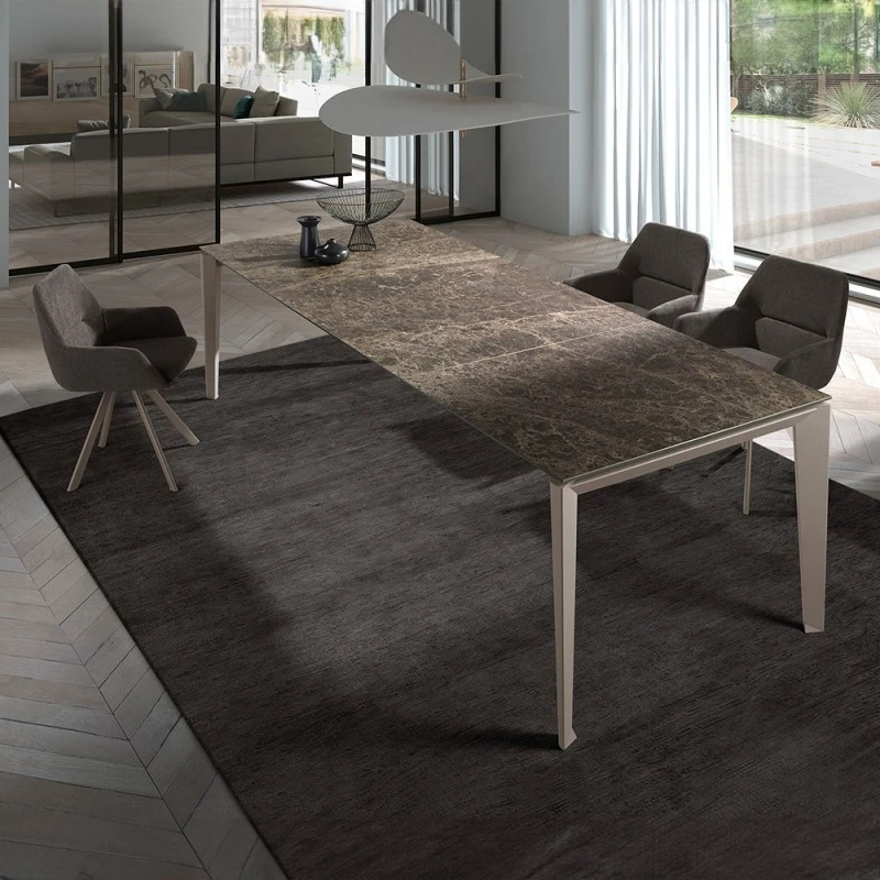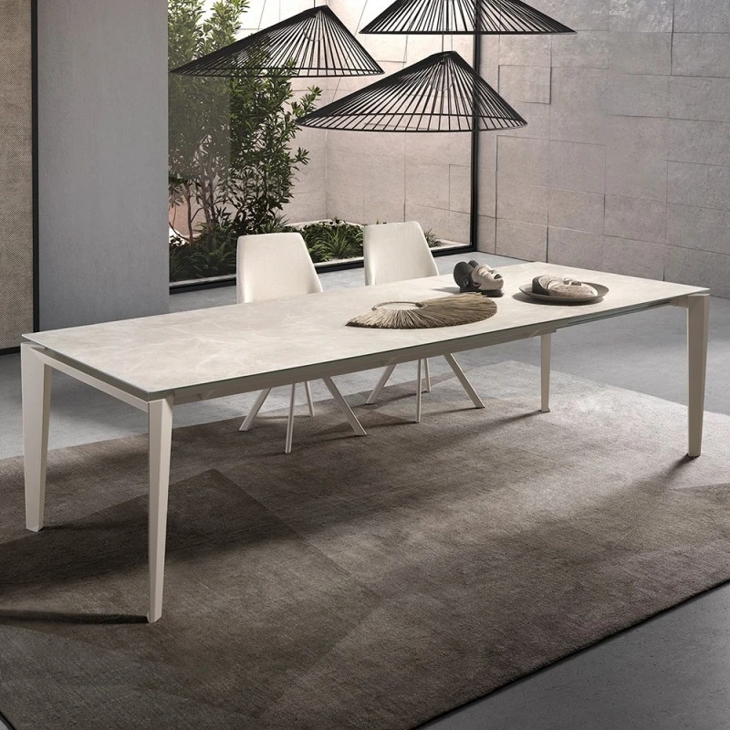 - Mesa de comedor extensible por desplazamiento de las patas.