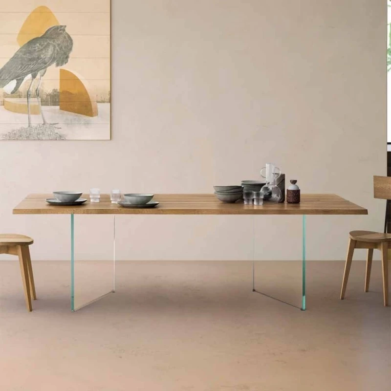 Múltiples soluciones para personalizar aún más la mesa y satisfacer cualquier necesidad. Puedes elegir entre las variantes de madera que garantizan la continuidad con la parte superior, el hierro en todos sus acabados, para crear un contraste agradable o el vidrio para aligerar la estructura, consiguiendo que casi desaparezca, con el objetivo de embellecer aún más la nobleza de la Tapa de madera maciza.