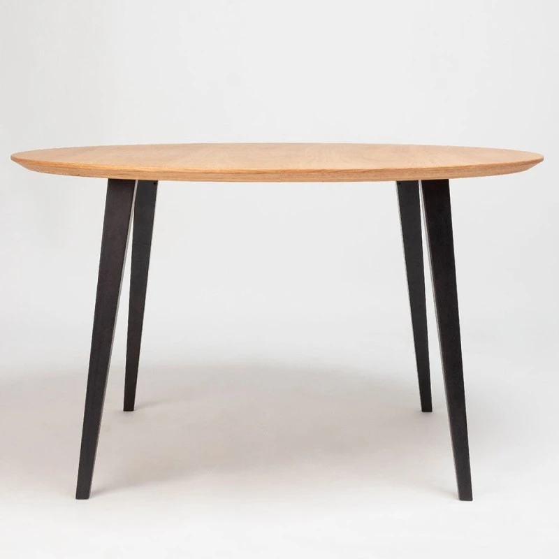 Mesa de comedor redonda Bob fabricada en madera de roble tintado.