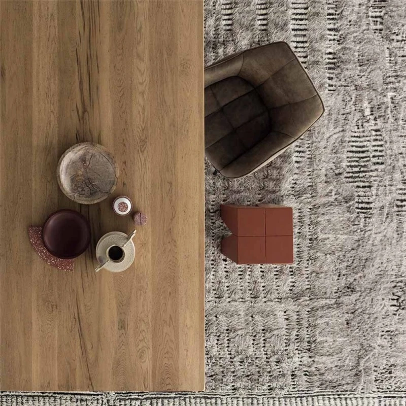 La mesa de comedor Wood fabricada en madera maciza de roble, se caracteriza por su linealidad que subraya su sencillez y modernidad. El grosor de 5,2 cm resalta todo su valor. Gracias a la artesanía que forja cada mesa, hay que considerar cada pieza como única.