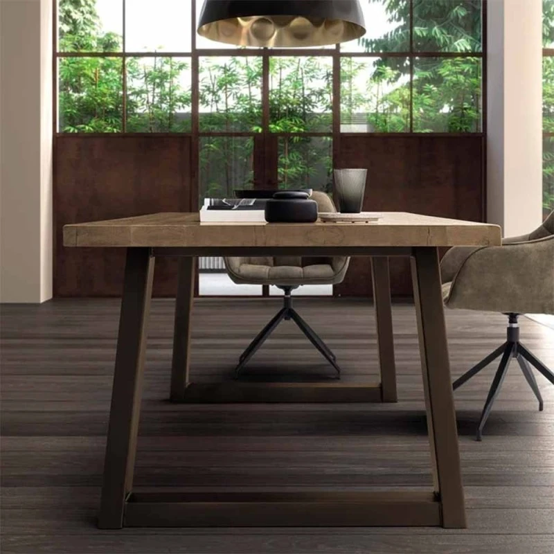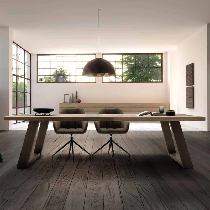 Múltiples soluciones para personalizar aún más la mesa y satisfacer cualquier necesidad. Puedes elegir entre las variantes de madera que garantizan la continuidad con la parte superior, el hierro en todos sus acabados, para crear un contraste agradable o el vidrio para aligerar la estructura, consiguiendo que casi desaparezca, con el objetivo de embellecer aún más la nobleza de la Tapa de madera maciza.