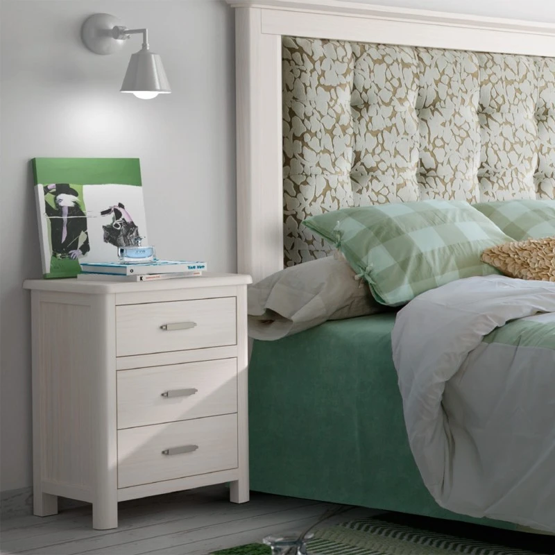 Mesa de noche rústica Cerdeña con 3 cajones. Fabricada en madera de pino.