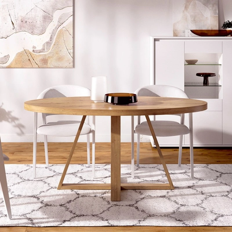 Mesa de comedor fija ovalada 140×90 cm con tapa de 5 cm de grosor y patas en tablero de fibras recubierto de melamina de primera calidad. Acabado de la foto: Nordic.