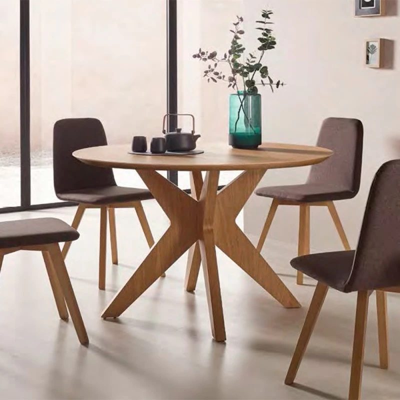El diseño redondo de la mesa fomenta la interacción y la conversación entre los comensales, creando un ambiente acogedor y social. Además, su tamaño es perfecto para acomodar a varias personas sin ocupar demasiado espacio, lo que la hace ideal tanto para cenas íntimas como para reuniones más grandes.