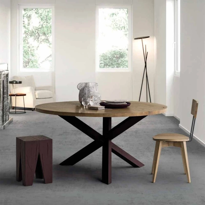 La mesa de comedor Smart tiene un diseño sencillo con tapa de roble matérico de 3,5 cm y que esta concebida para satisfacer las necesidades de quiénes aman la fuerza y la simplicidad al mismo tiempo.