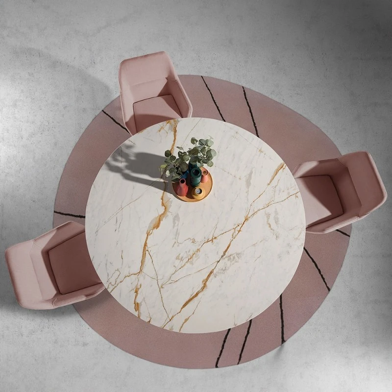 Sus muebles combinan metal, vidrio, cerámica y madera; en una extensa gama de colores, acabados y medidas. La busqueda del equilibrio entre la forma y la funcionalidad es una premisa siempre presente en sus diseños.