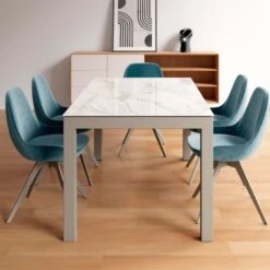Mesa Extensible Porcelanico Gris Atenea Y Patas Blancas LISA