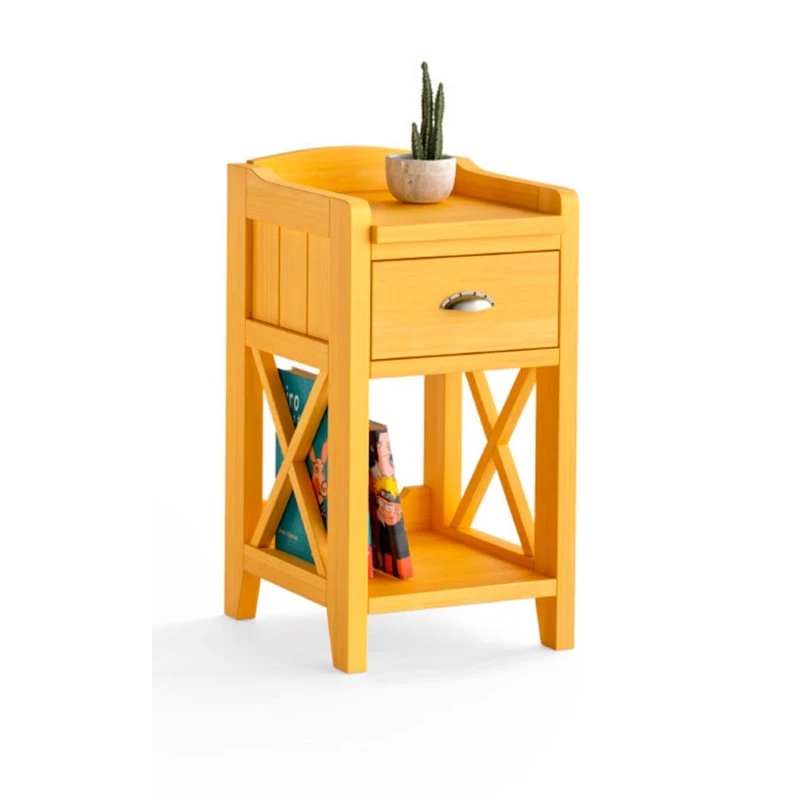 Mesita de noche estrecha Verona con un cajon y un hueco. Fabricada en madera de pino.