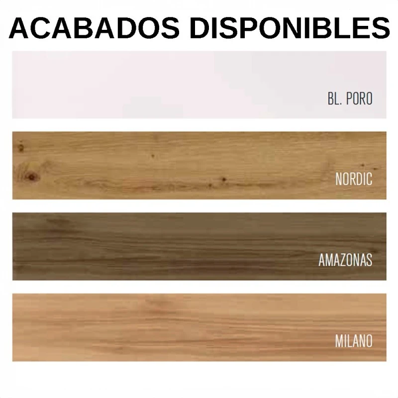 - Tableros melamínicos de primera calidad resitentes a rayaduras y manchas, según normtiva UNE-EN 14322. Grosores de 1,9 cm y 3 cm. Atamborados de grosor 5,5 cm.