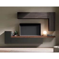 - Módulo de colgar 1 puerta elevable cerámica. 150×34,1×30. Interior lacado – tirador T – cerámica blaze dark / taiga mate.