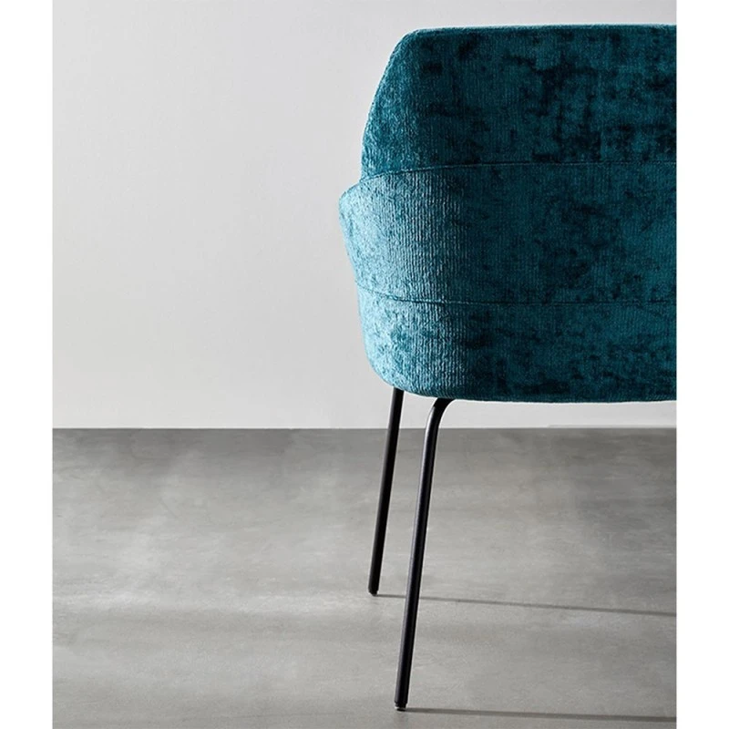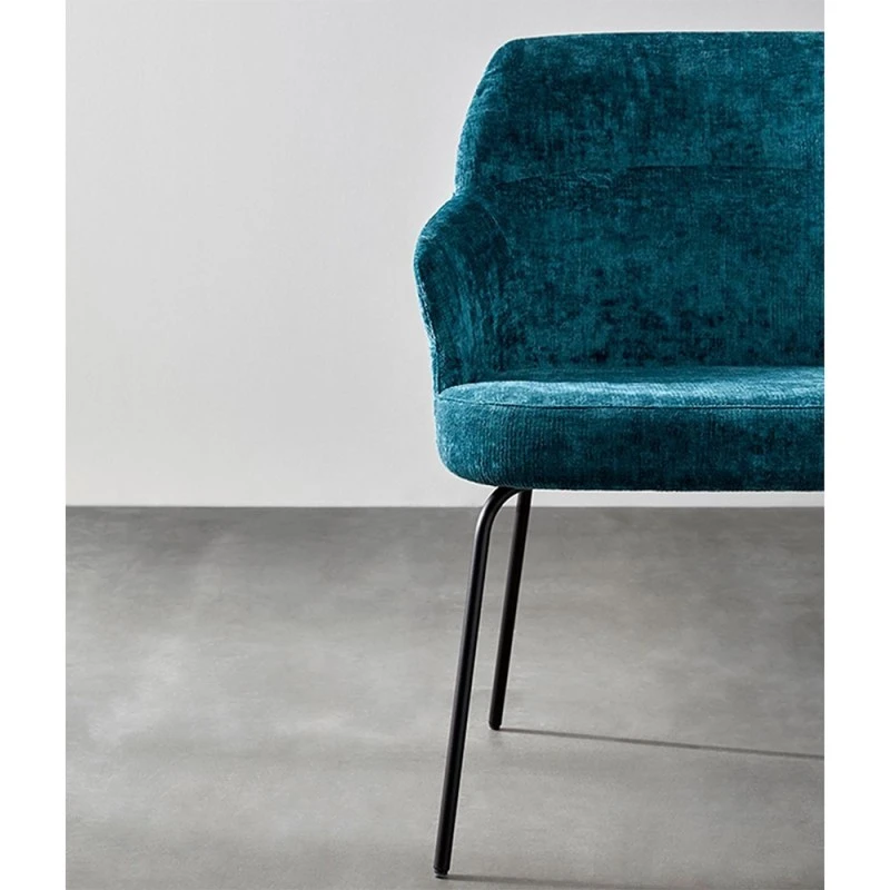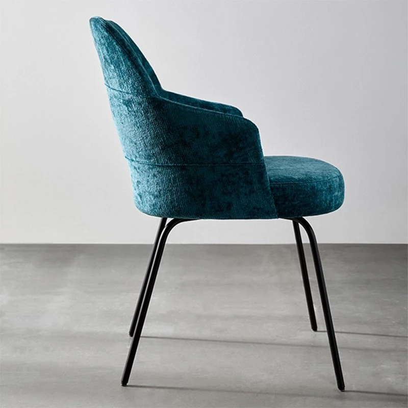 Silla de respaldo alto con pie metálico de Ø16 mm y carcasa de poliuretano inyectado íntegramente tapizada.