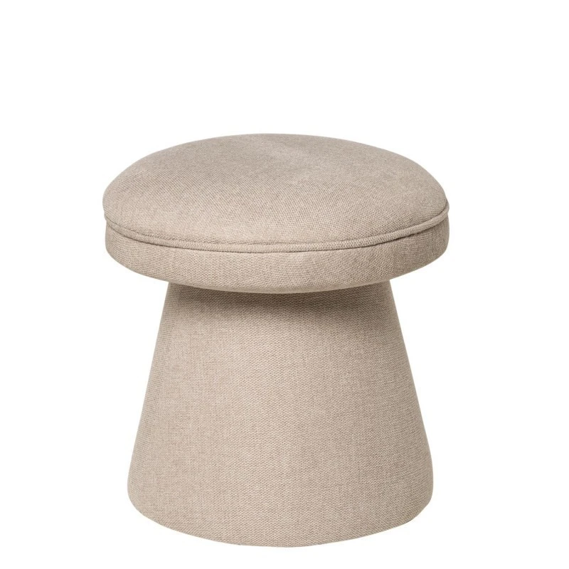 Puff tapizado en tela de borreguito color beige.