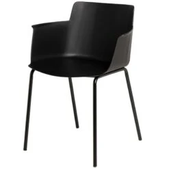 Silla de cocina con carcasa de polipropileno y patas metálicas en el mismo color.