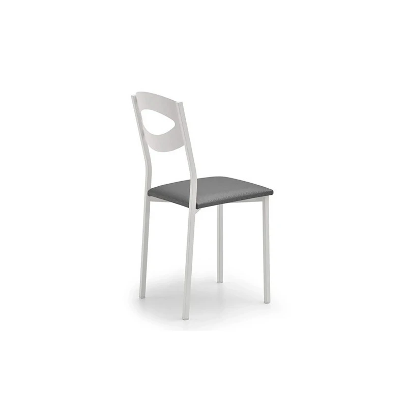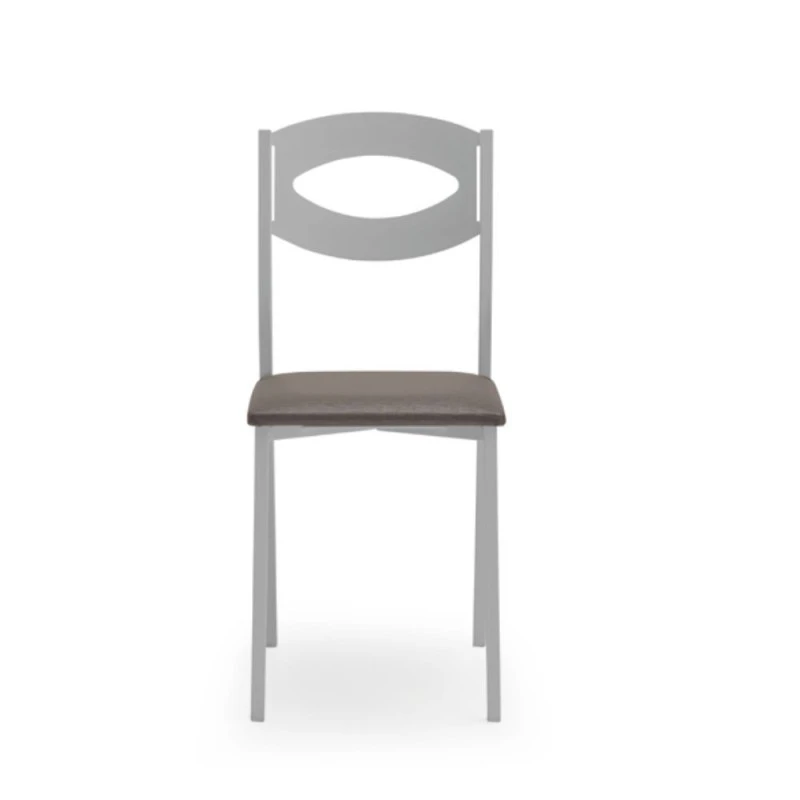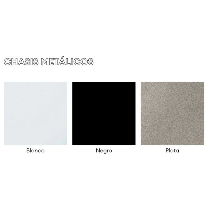 Silla con chasis metálico y asiento tapizado. La silla Luna cuenta con un chasis metálico acabado con pintura Epoxi en Blanco, Plata o Negro. Su asiento tapizado con cantos redondeados está disponible en tejido Michigan.
