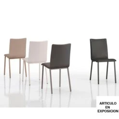 Silla de comedor Siero con carcasa tapizada y patas metálicas.