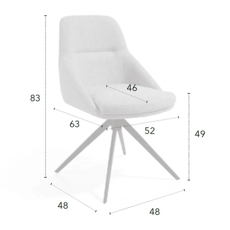 - Ancho: 52 cm | Fondo: 63 cm | Alto: 83 cm | Altura del asiento: 49 cm