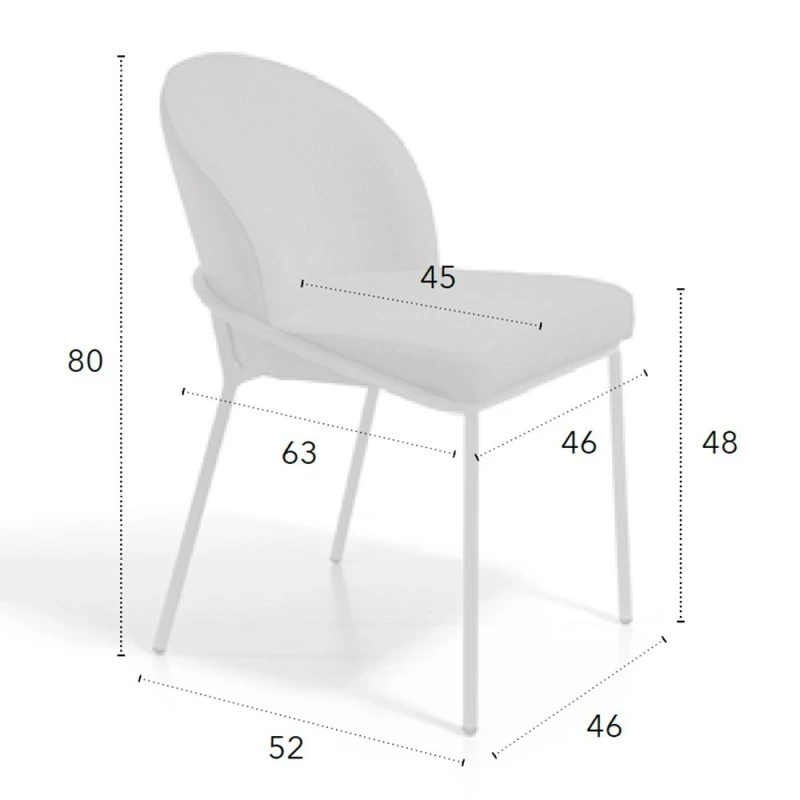 - Ancho: 46 cm | Fondo: 63 cm | Alto: 80 cm | Altura del asiento: 48 cm
