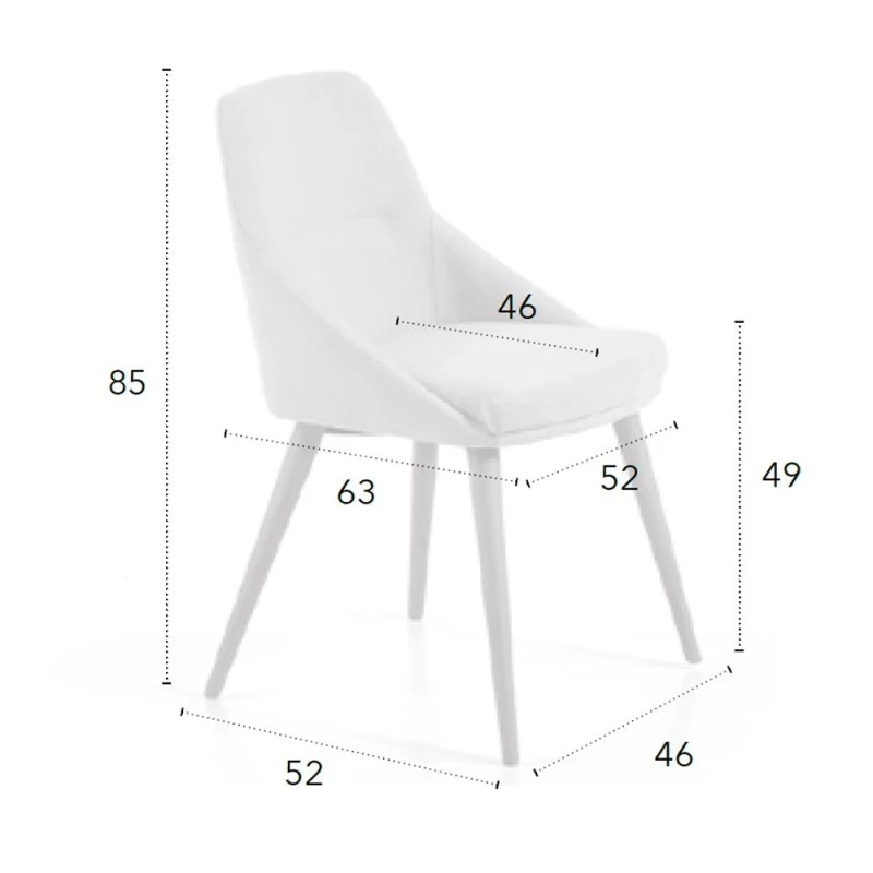 - Ancho: 52 cm | Fondo: 63 cm | Alto: 85 cm | Altura del asiento: 49 cm