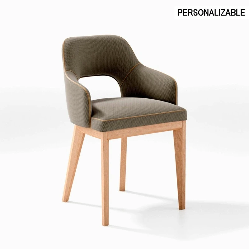 Silla de comedor Gaston con estructura en madera de fresno. Tapizado en tela Step de Bitex (no se corresponde con la de la imagen). El vivo se tapiza en el mismo color que el tapizado de la silla.