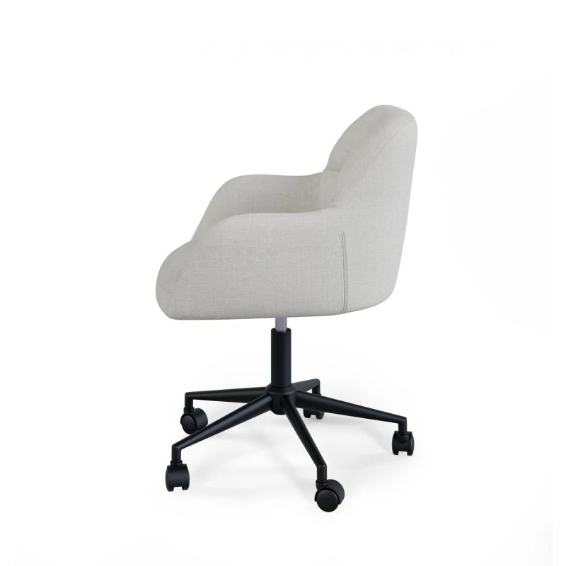 La base metálica negra incluye ruedas giratorias de 360º, lo que permite una movilidad fluida y versátil en cualquier entorno. Además, su sistema de ajuste de altura mediante pistón de gas facilita la personalización de la silla, adaptándose a las preferencias y necesidades de cada usuario.