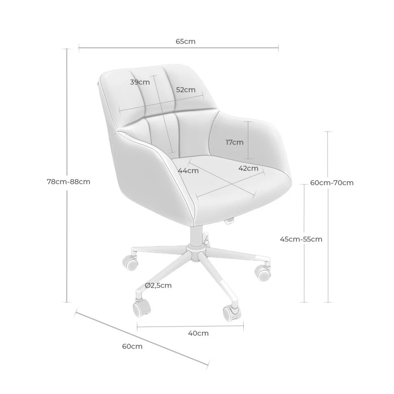 - Ancho: 65 cm | Fondo: 60 cm | Alto: 78/88 cm | Altura del asiento: 45/55 cm