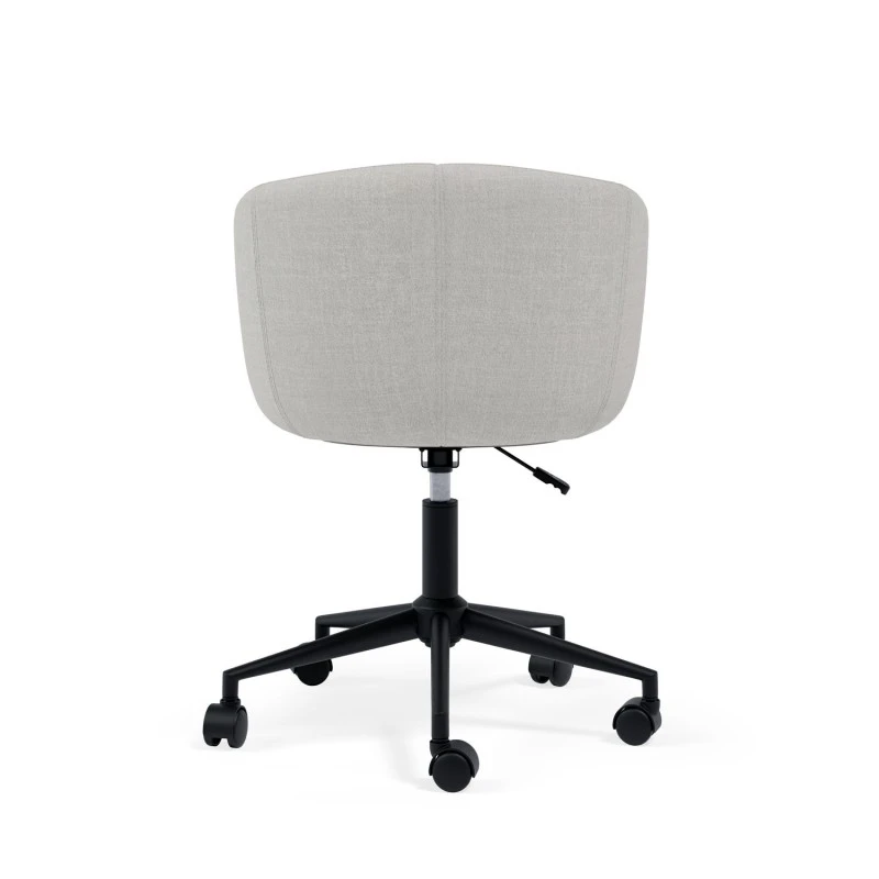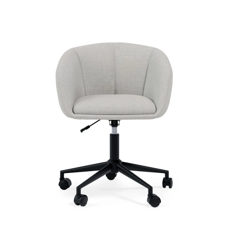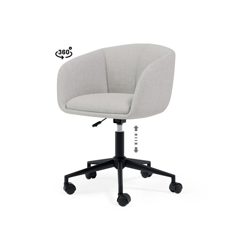 El diseño de la silla incluye un asiento, respaldo y reposabrazos acolchados, que ofrecen un nivel superior de confort, ideal para jornadas laborales extensas. La estructura metálica en color negro aporta un toque moderno y elegante, creando un contraste visual atractivo con el color del tejido, disponible en diversas tonalidades, para adaptarse a diferentes estilos de decoración.