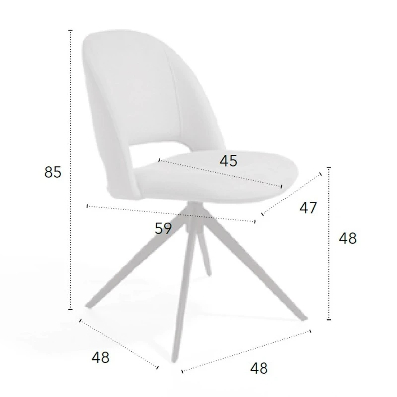 Silla de comedor giratoria con retorno, tapizada Cassia D con estructura metálica. Se puede lacar en cualquier color que se ofrece en el muestrario del fabricante.