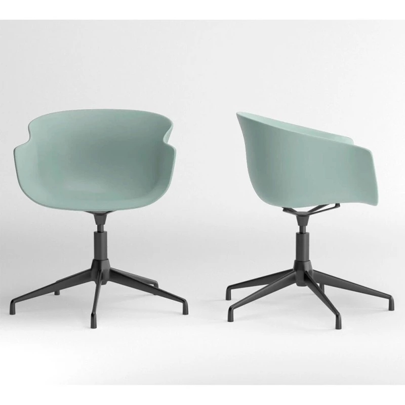 Silla de comedor Bai giratoria con asiento y respaldo tapizado en tela serie A y estructura metálica.