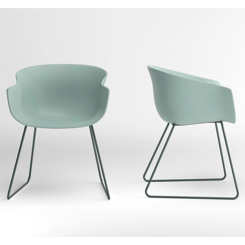 Silla de comedor Bai con asiento y respaldo en polipropileno y estructura metalica lacada epoxi con patas de trineo.