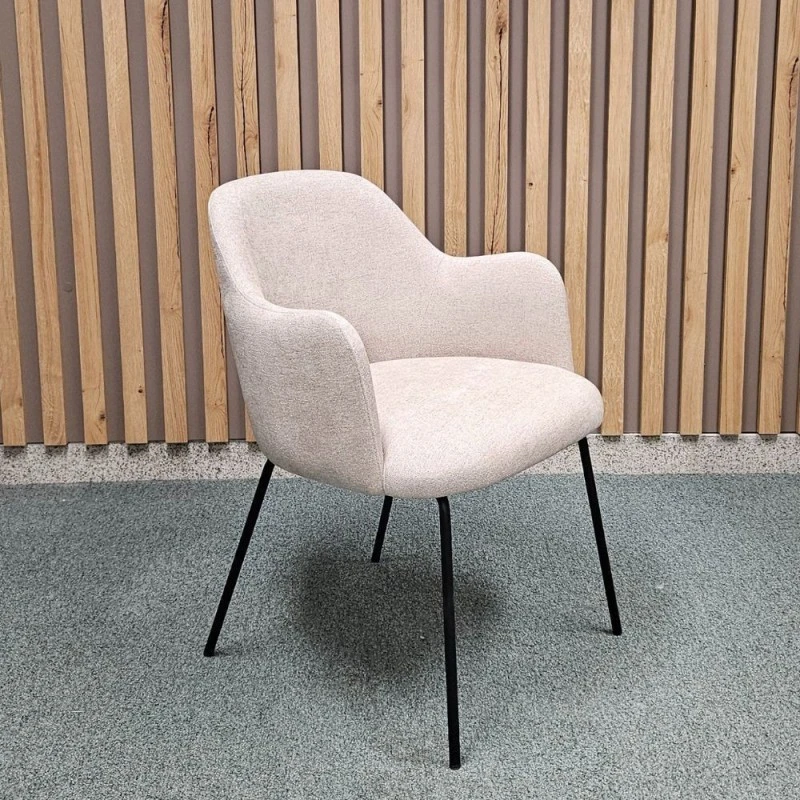 Sillón tapizado con brazos Dallas con patas metalicas. Tapizado tela Lido de Froca.