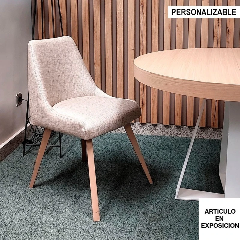 Silla tapizada Catania con estructura en madera de haya.