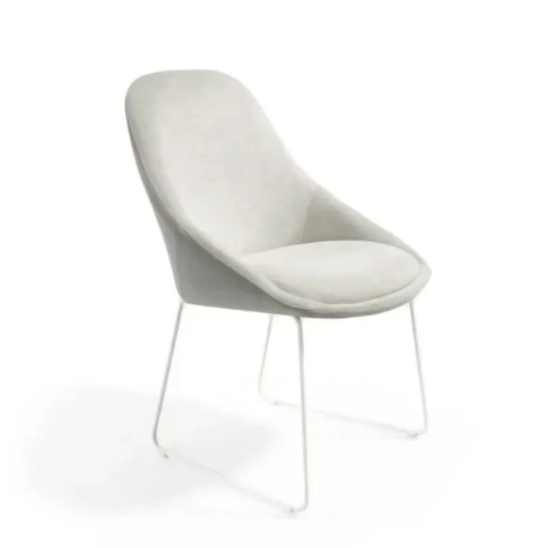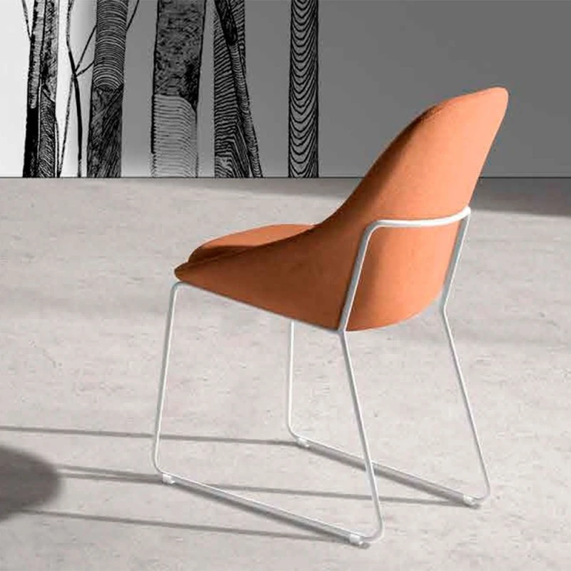 Silla de comedor tapizada Chiara D con estructura metálica de patin. Se puede lacar en cualquier color que se ofrece en el muestrario del fabricante.