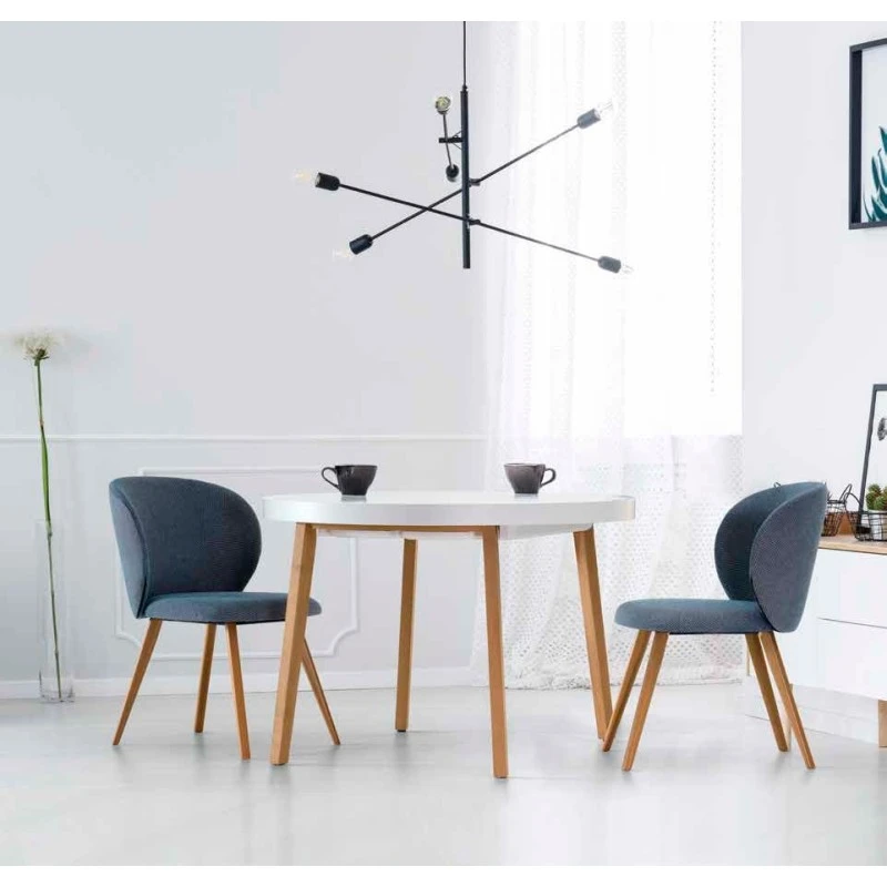 Silla tapizada Dalia con pata nórdica de madera y estructura en madera de haya. Tapizada en tela Lido de Froca.