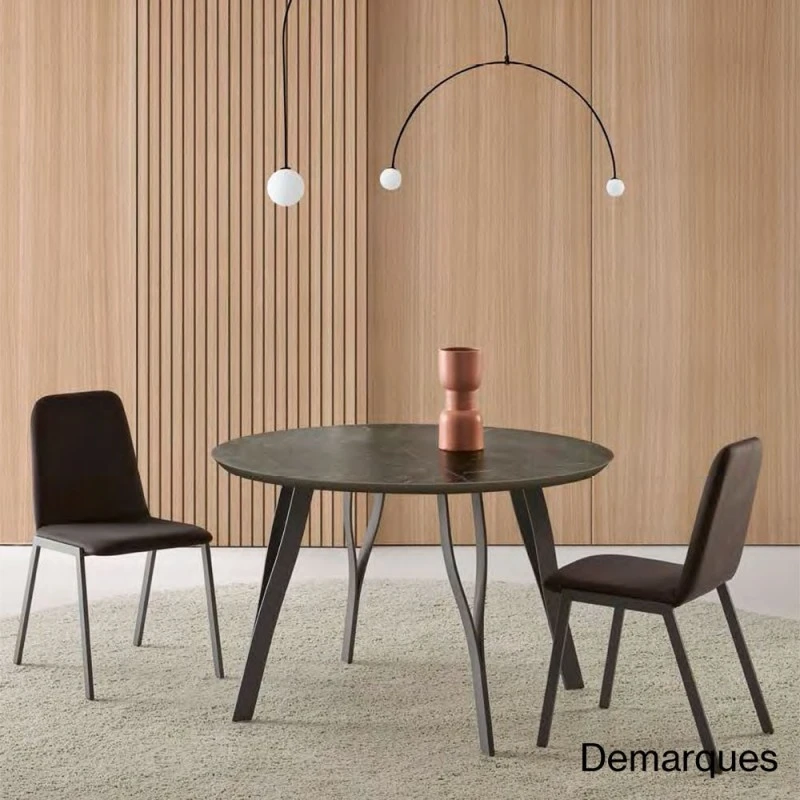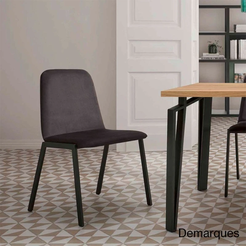 Silla tapizada Marni con estructura metálica.Tapizada en tela Taipei de Froca.
