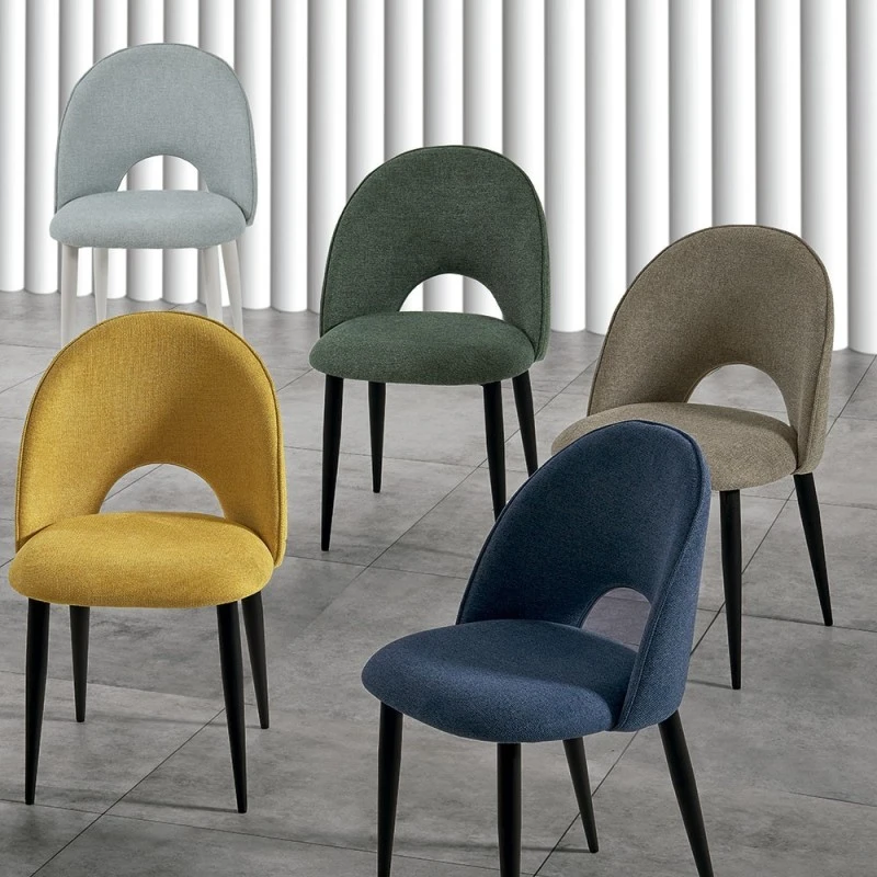 La Silla Ryta fusiona elegancia contemporánea con funcionalidad excepcional. Tapizada en tela waterproof, esta silla no solo añade un toque de sofisticación a cualquier espacio, sino que también garantiza durabilidad y resistencia a las manchas para un uso sin preocupaciones. Sus patas metálicas con forma cónica ofrecen una base sólida y estilizada, brindando estabilidad y un diseño moderno.